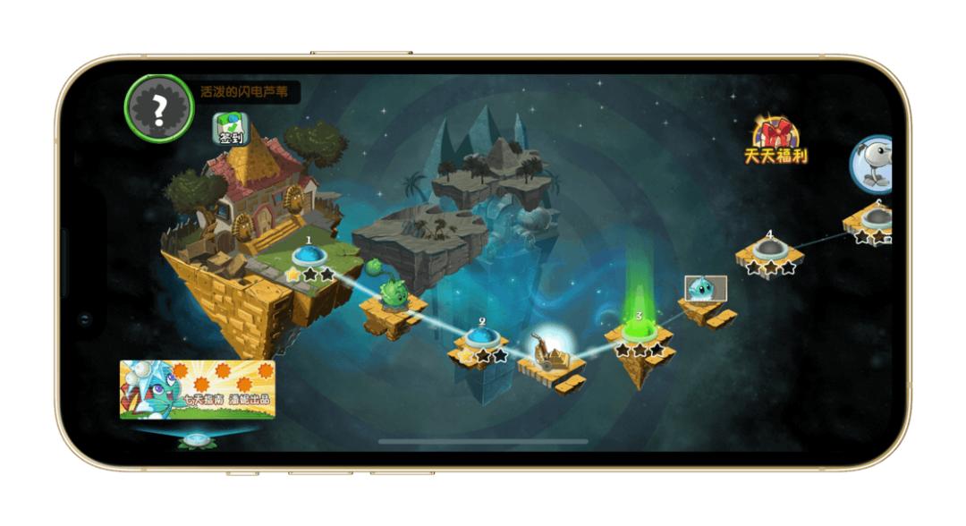而打开《植物大战僵尸 2》,国区首先遇见的便是防沉迷系统的实名登记,美区则是年龄的选择。进入游戏,国区在第一关就来到了古埃及,整体的画风已经与一代没有太多关联,也增加了不少的氪金项目,但「天天福利」、「签到」这些内容的加入,还是让游戏多了十足的中国式味道;而美区的版本则还是会在戴夫家门口回味一轮,接着被僵王博士用时光机倒回千年前的古埃及。