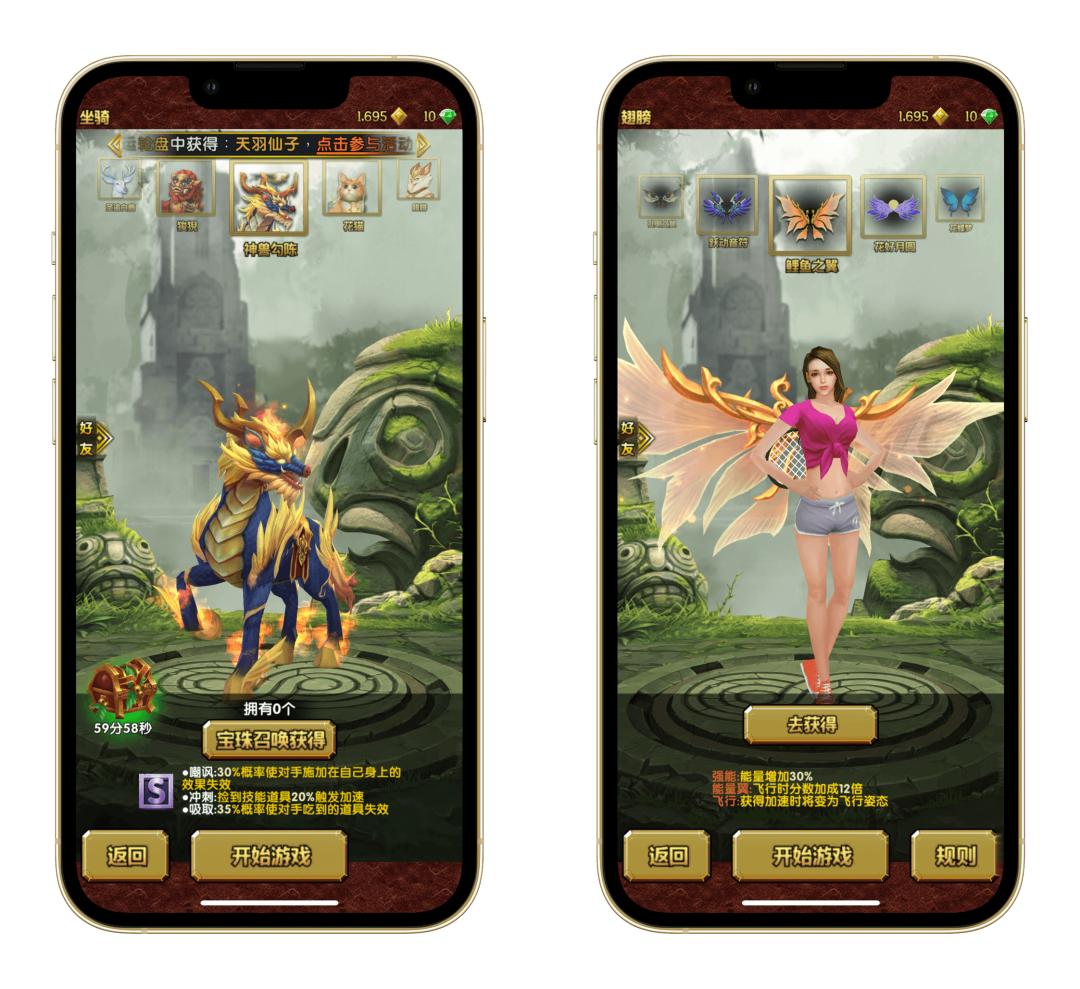 但这还不算全部,除了人物形象之外,国区的《神庙逃亡 2》还加入了翅膀、宠物、坐骑等内容,整个一股「贪玩蓝月」味道,就差游戏里突然给你来一句: