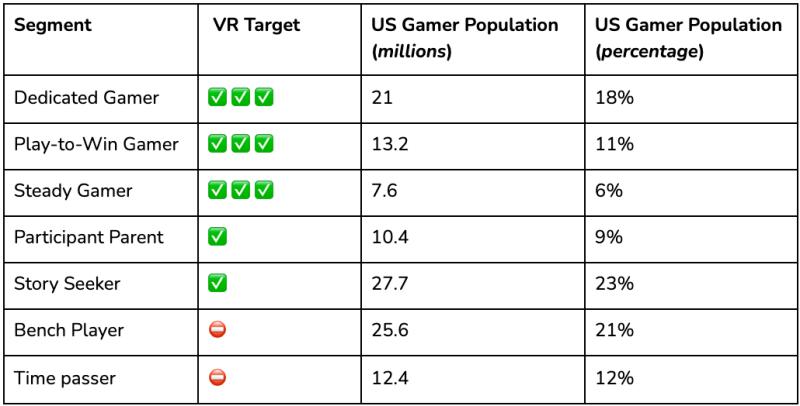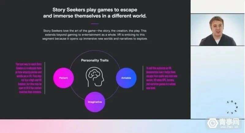 那么除了现有的游戏,VR接下来还能抓住哪些受欢迎的应用场景?为了探索VR的未来,一直押注这项技术的Meta对Quest玩家们进行了一项调查。他们发现,Quest玩家可分为7种类型,每种不同类型的玩家使用VR的方式和行为也各不相同。此外还发现,相比于纯粹的动作游戏,Quest用户中还有占比最大的一类叙事爱好者,他们的特点是喜欢优质的VR故事和世界,而且可能在VR技术变得更主流、价格更亲民的时候入手VR。