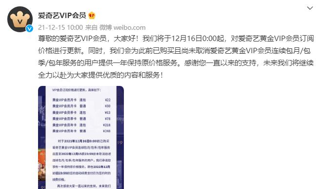 裁员节流后,爱奇艺将开源的希望寄托于涨价。12月15日,爱奇艺宣布,从16日开始对爱奇艺黄金VIP会员订阅价格进行更新。提价后,黄金VIP普通包月会员由25元提至30元,连续包月由19元提至22元,普通季卡会员由68元提至78元,连续包季58元提至63元,普通和连续年卡会员价格保持不变。