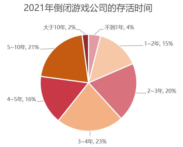 成立时长小于4年的公司从2020年的68%下降到61%,依然有大量的游戏公司倒在起步的前4年,不过今年占比有所下降,老公司也会因为新政策、环境的变化而遇到更多挑战。