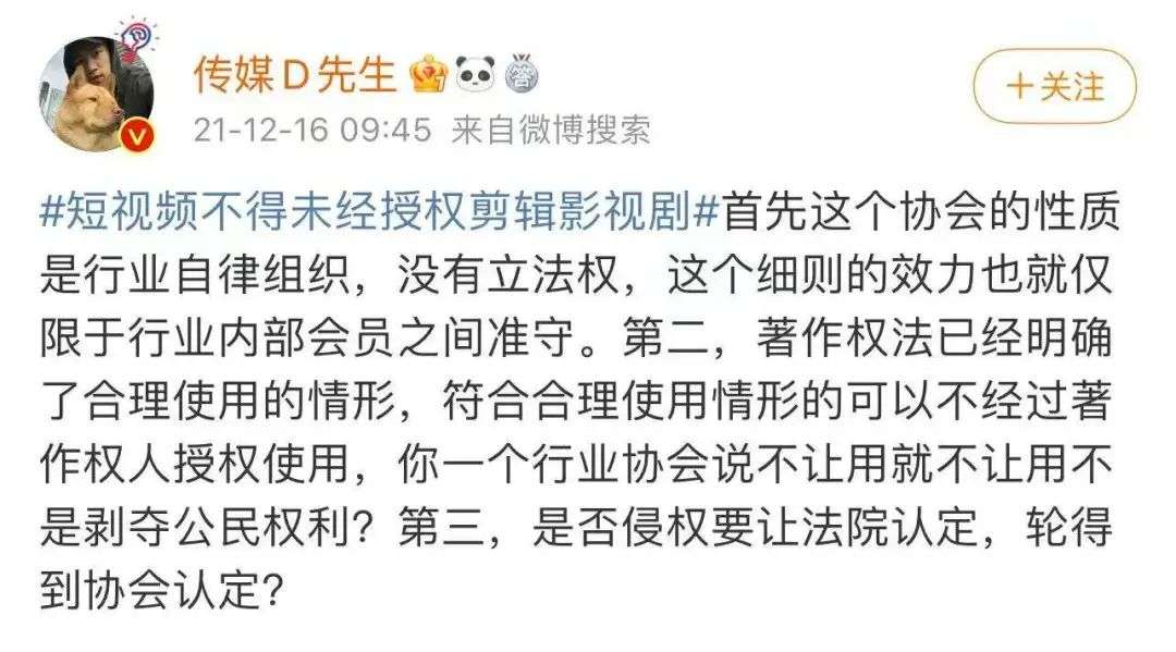 因此,他认为网络视听协会发布的这项规定是“剥夺公民权利”,至于作品具体是否侵权得让法院判定。