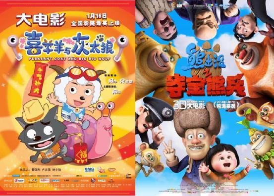 在那之后的2012、2013这两年内,《喜羊羊与灰太狼》这个系列可以说算是国内动画电影的最大IP,不仅保持着一年两部的频率与观众们见面(贺岁档和暑期档),票房也始终高居不下。直到2014年,国产动画票房冠军终于易主,由另一个低幼动画IP取代——《熊出没》。