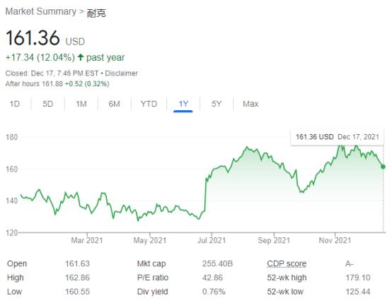 这点在耐克的股价走势上也有所体现,基本已经可以确定跑输了大盘。