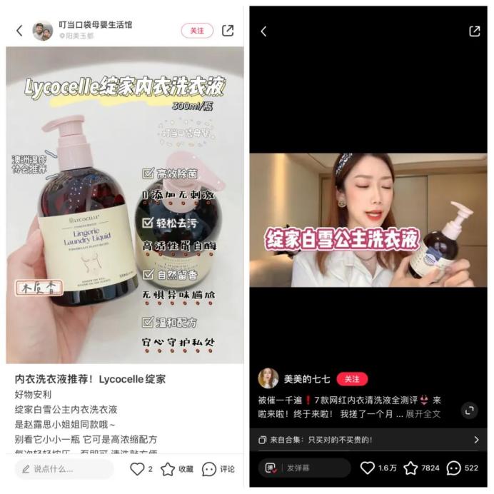 绽家的爆款产品内衣洗衣液在小红书做投放时,就打造了“赵露思白雪公主”“白雪公主洗衣液”等关键词。通过明星赵露思及“白雪公主”两大核心关键词,打造深入人心的清爽、洁净的消费心智: