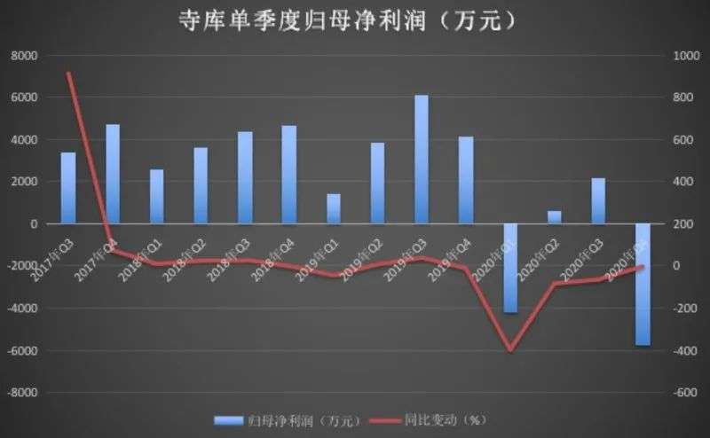 在基本面已千疮百孔之外,寺库的业绩表现也相当惨淡。今年11月,寺库终于向投资者交出了迟到半年的财报,披露其截至2020年12月31日的2020年年报。财报显示,寺库2020年营收约60.2亿元,同比下降12%;归母净利润为-7186.4万元,同比由盈转亏,上年同期为盈利1.54亿元。