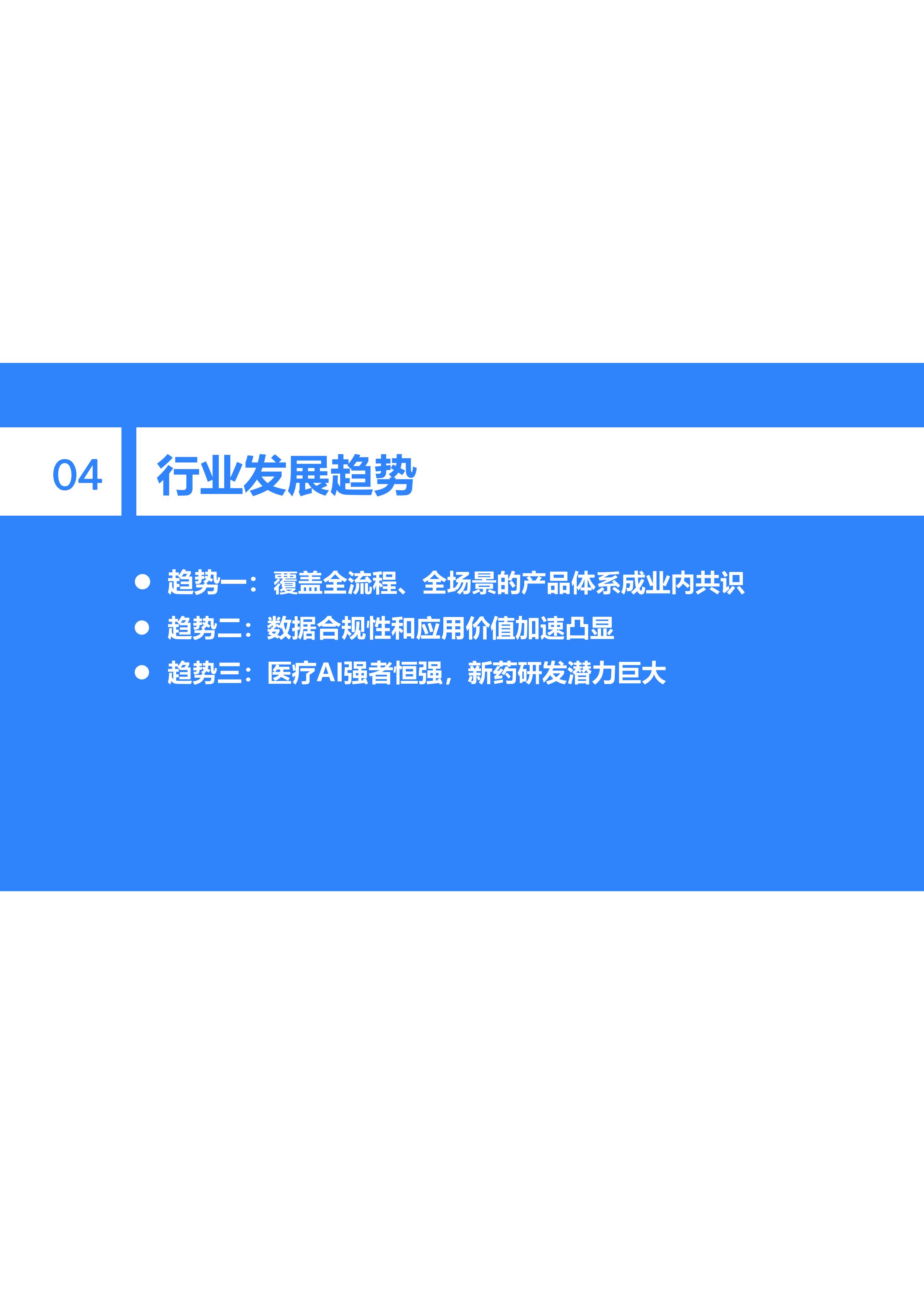 医疗AI产品以助力降本增效、提升各级医疗机构诊疗水平等为主要目的,能有效扩大医院服务半径、缓解医疗资源紧张、推动医疗资源合理配置。未来,以临床价值为导向的医疗AI产品将实现多元化发展,头部企业通过与顶级科研资源、医疗机构合作,在保障数据安全与合规的基础上,使用大量优质数据对算法模型进行持续打磨,推动产品的横向扩展和纵向延伸。覆盖多部位、多病种、多模态的诊疗一体化解决方案将成为医疗AI企业提升竞争力的关键所在。