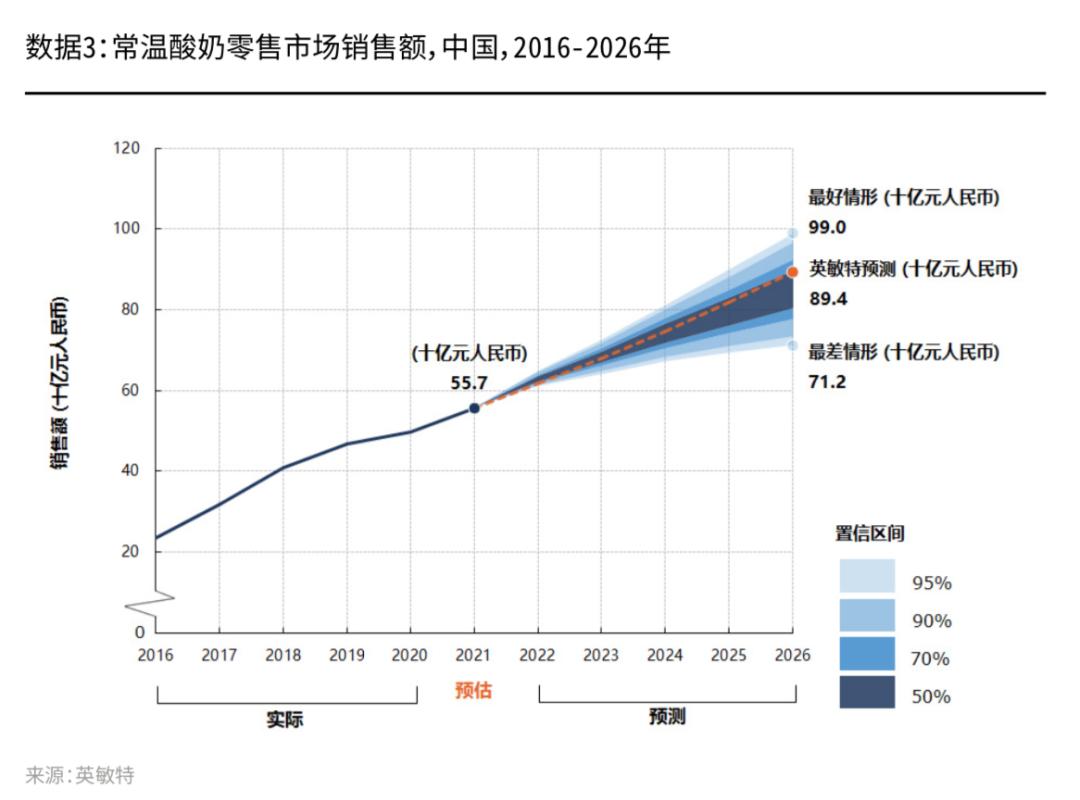 “常温酸奶的增速预计超越冷藏酸奶。相比冷藏酸奶,常温酸奶有价格上的优势,也不那么依赖消费者在线下渠道的随机消费。”报告指出。