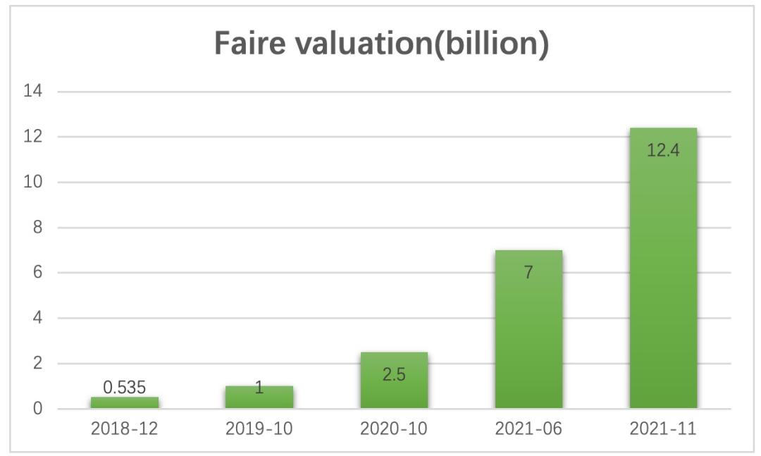 Faire近年来的估值变化(单位:十亿),硅星人根据公开数据整理制图