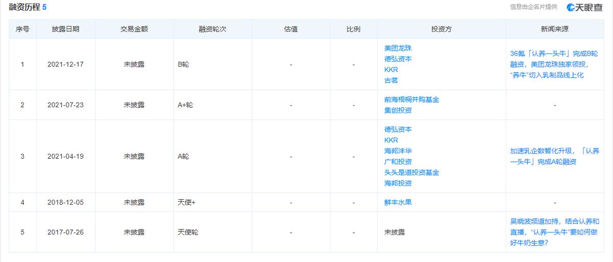据松果财经获悉,乳业新品牌「认养一头牛」已完成B轮融资。本轮融资由美团龙珠领投,包括DCP、KKR、古茗等新老股东跟投,明越资本担任独家财务顾问。