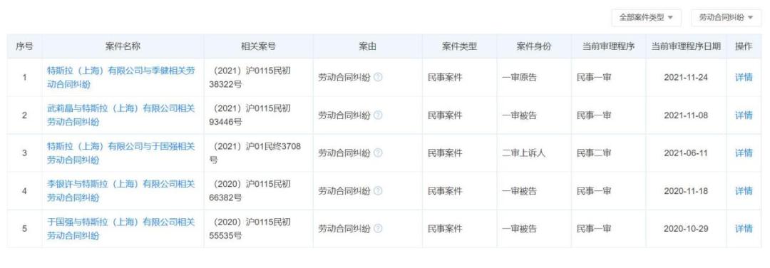 蒋某美与特斯拉的劳动合同纠纷并非是个案,在2020年以来,特斯拉涉及多起劳动合同相关的纠纷。