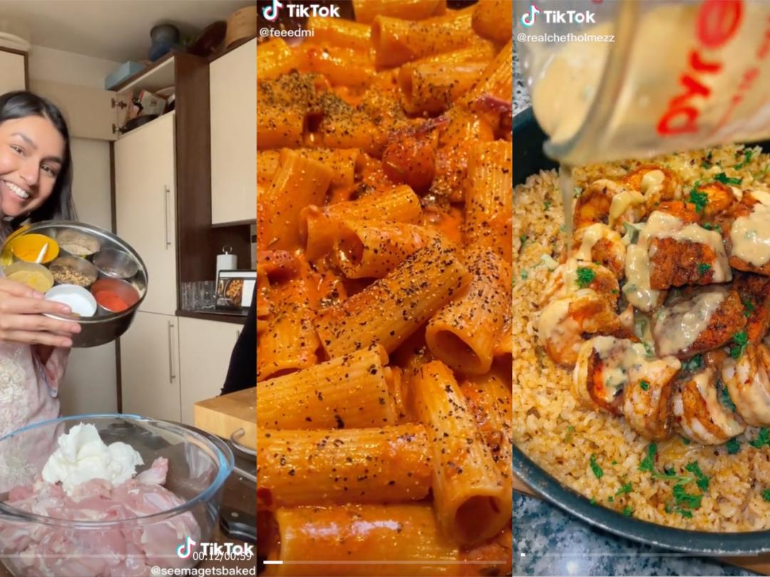 在疫情居家期间,TikTok用户池子和使用时长猛涨,跟着一起涨的,还有平台上五花八门的美食内容。截至12月,#FoodTok 标签下累计了超过115亿视频,有教烹饪技巧的,有分享食谱的,有测试食谱的。烤羊奶酪番茄意面的食谱从TikTok上火起来之后,全网病毒式传播,成为2021年谷歌上被搜索最多次的一道菜。