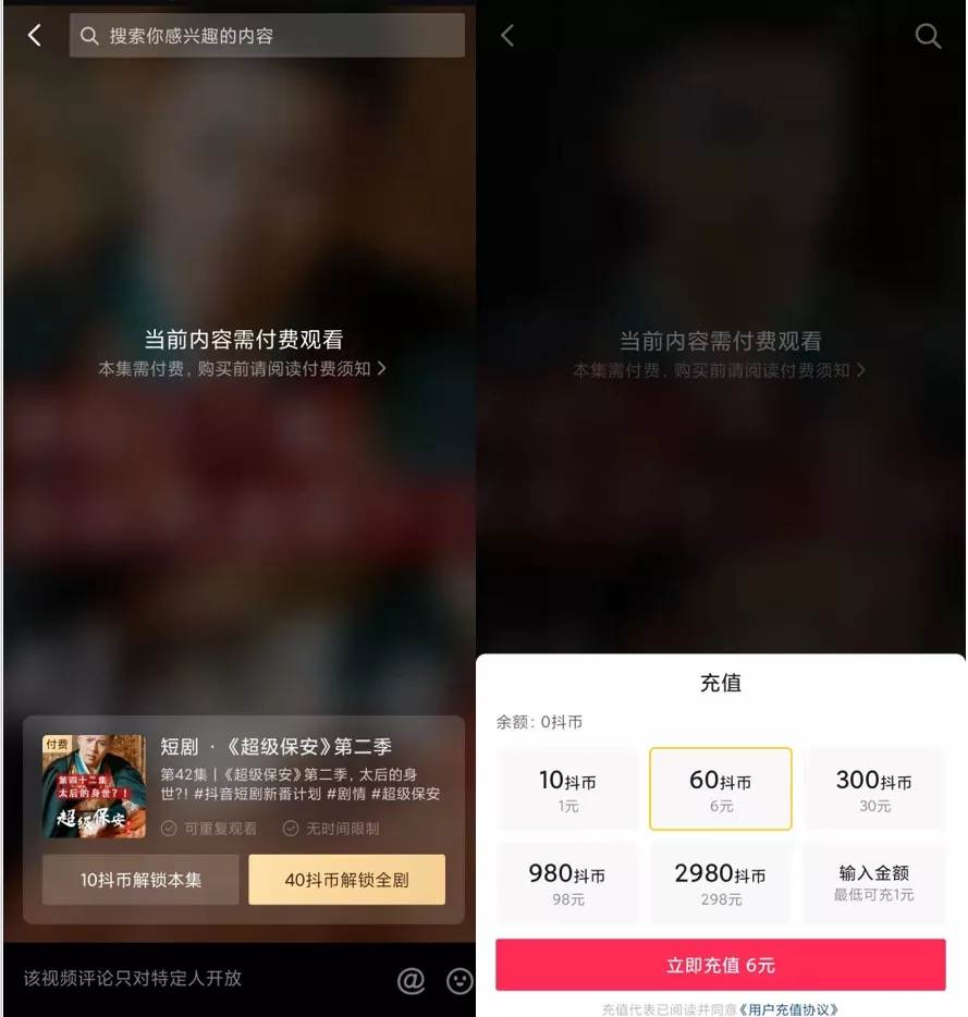 11月底,有消息称,抖音正在测试剧集单集付费功能。短剧收费规则与付费网络小说类似,用户可以花10抖币(安卓账户1元,iOS账户1.4元)解锁单集,也可以用更优惠的价格批量解锁全集,解锁后无时间限制。