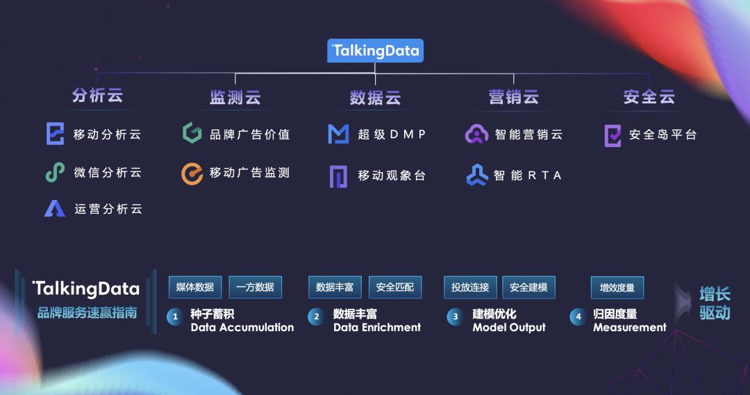 在TalkingData的营销科技能力布局中,已经有了覆盖数据蓄积、数据丰富、建模投放和归因度量的营销全链路产品和解决方案,满足企业整合全域流量、用数据打通营销闭环来带动业务增长的需求。