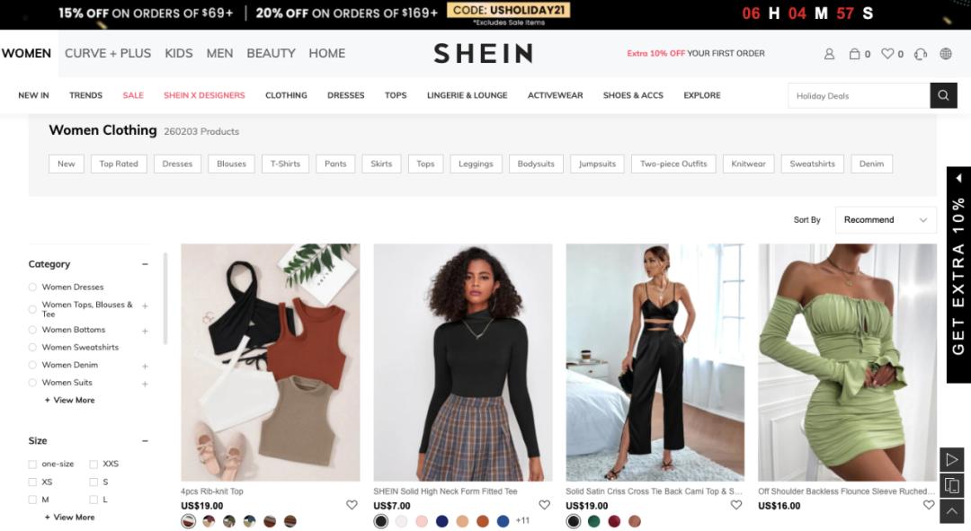 打开SHEIN,官网每天可以上新1000件新品,这一数字是英国超快时尚品牌一周的平均水平。路透社曾报道,SHEIN的服装从设计到生产只需要3天,源源不断的新品让无数美国消费者对SHEIN流连忘返。