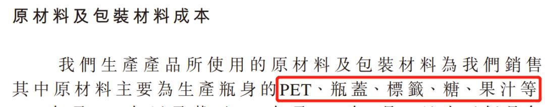 根据招股书,原材料成本占比最大的依次为PET、瓶盖、标签、糖、果汁,由此可见不添加糖和果汁的瓶装矿泉水,水的成本能低到什么程度。
