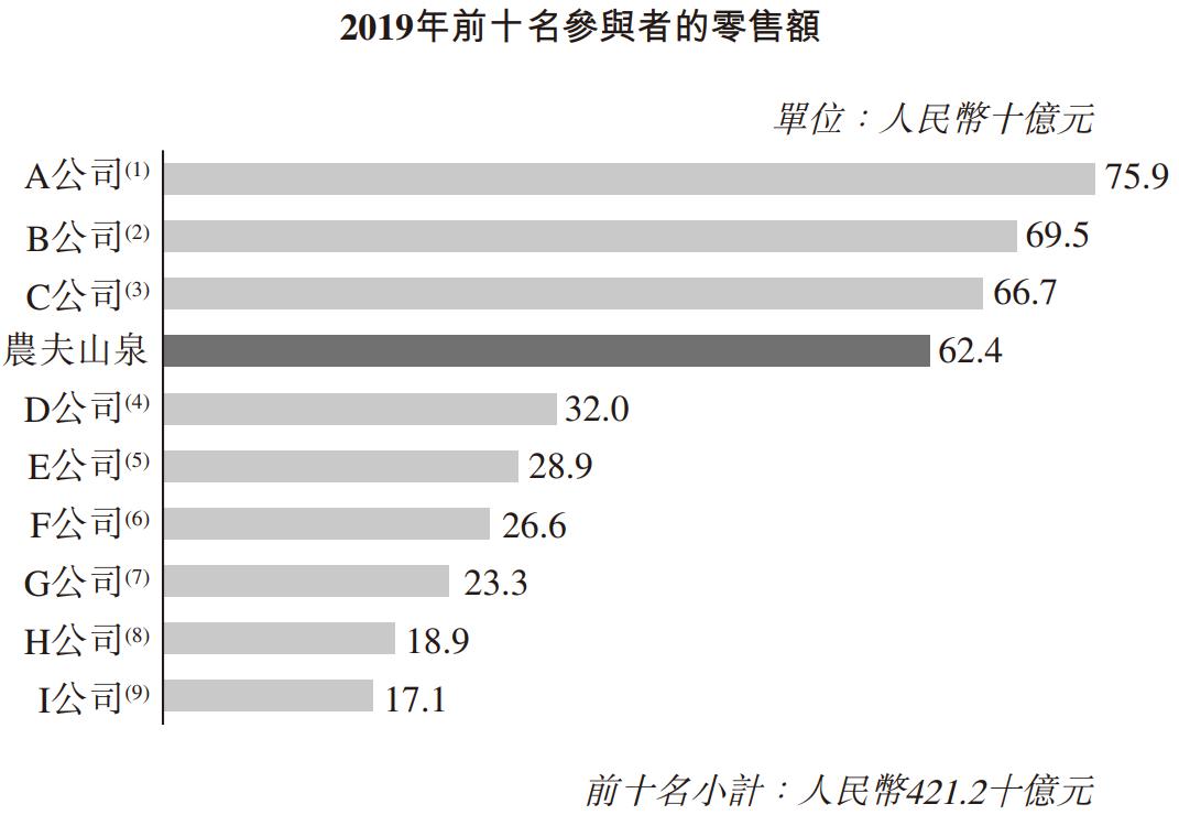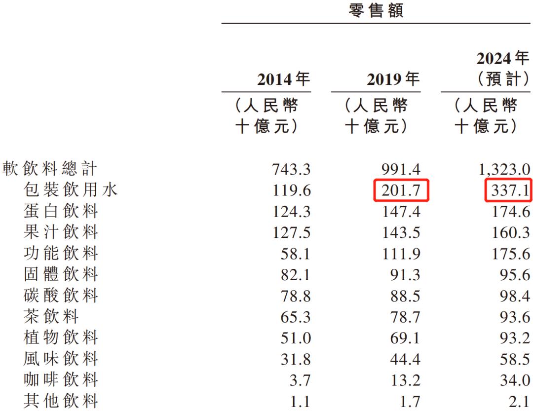 即便如此,农夫山泉还不是中国市场的饮料之王,根据招股书,农夫山泉2019年排名第四。