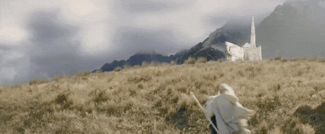 当甘道夫骑着影疾来到耸立在明多陆安山半山腰的「白城」。