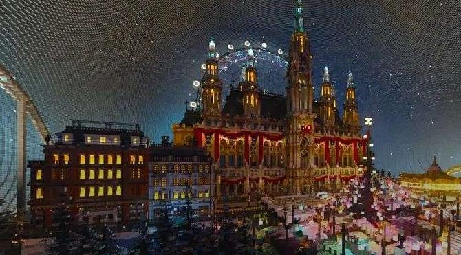 如果把三个「雪球」的面积加起来的话,可以达到近16万平方米(38英亩),Minecraft设计师Ushio Tokura(Dr_Bond)花费了300多个小时和3000多万个方块才建造完成。