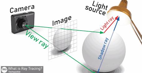 从原理上来说,光追做的事就是追踪光线的传播方向,然后在视觉画面渲染上可以在二维屏幕上呈现出一个三维效果。
