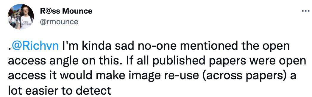 如果所有的论文都是开放存取的,那么图像误用/重复问题将更容易得到审查,训练AI也会更有效率。