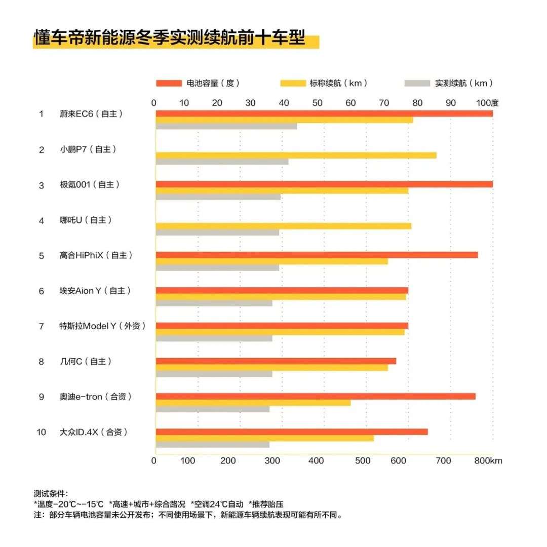 近日,懂车帝公布了他们关于41款热门新能源汽车的冬季测试结果,不少新能源汽车续航都出现了严重衰减,表现最好的车辆续航成绩也才300多公里,续航折损率达50%。