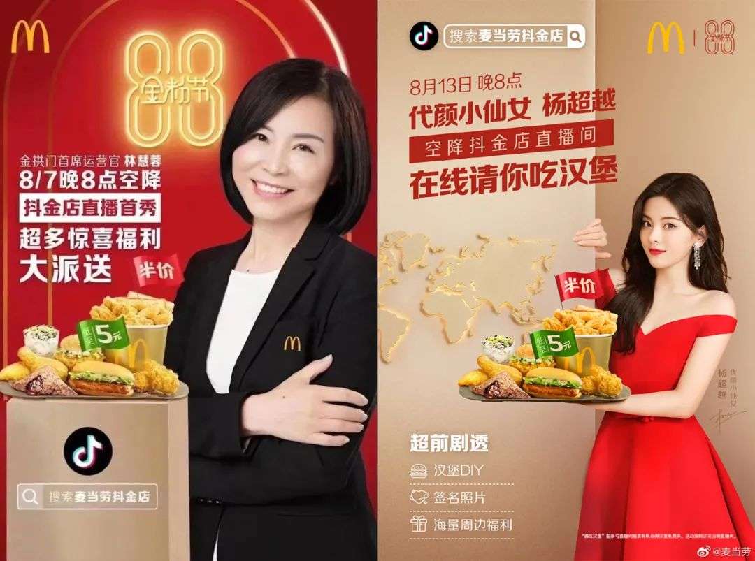 更值得一提的是,麦当劳在今年 7 月于抖音上线抖金店,随后在「88 金粉节」近一个月的活动中,麦当劳打造了以「麦当劳 CXO+明星达人」空降直播间为卖点的多场直播,从常规的品牌自播中脱颖而出,进一步提升了品牌与消费者之间的亲密度。麦当劳早在 2015 年就开始布局数字渠道,而今年则是将抖音电商作为品牌持续运营的重要阵地,通过公司高管或明星达人吸引消费者,再利用购买行为最终将消费者转化至品牌私域流量池。