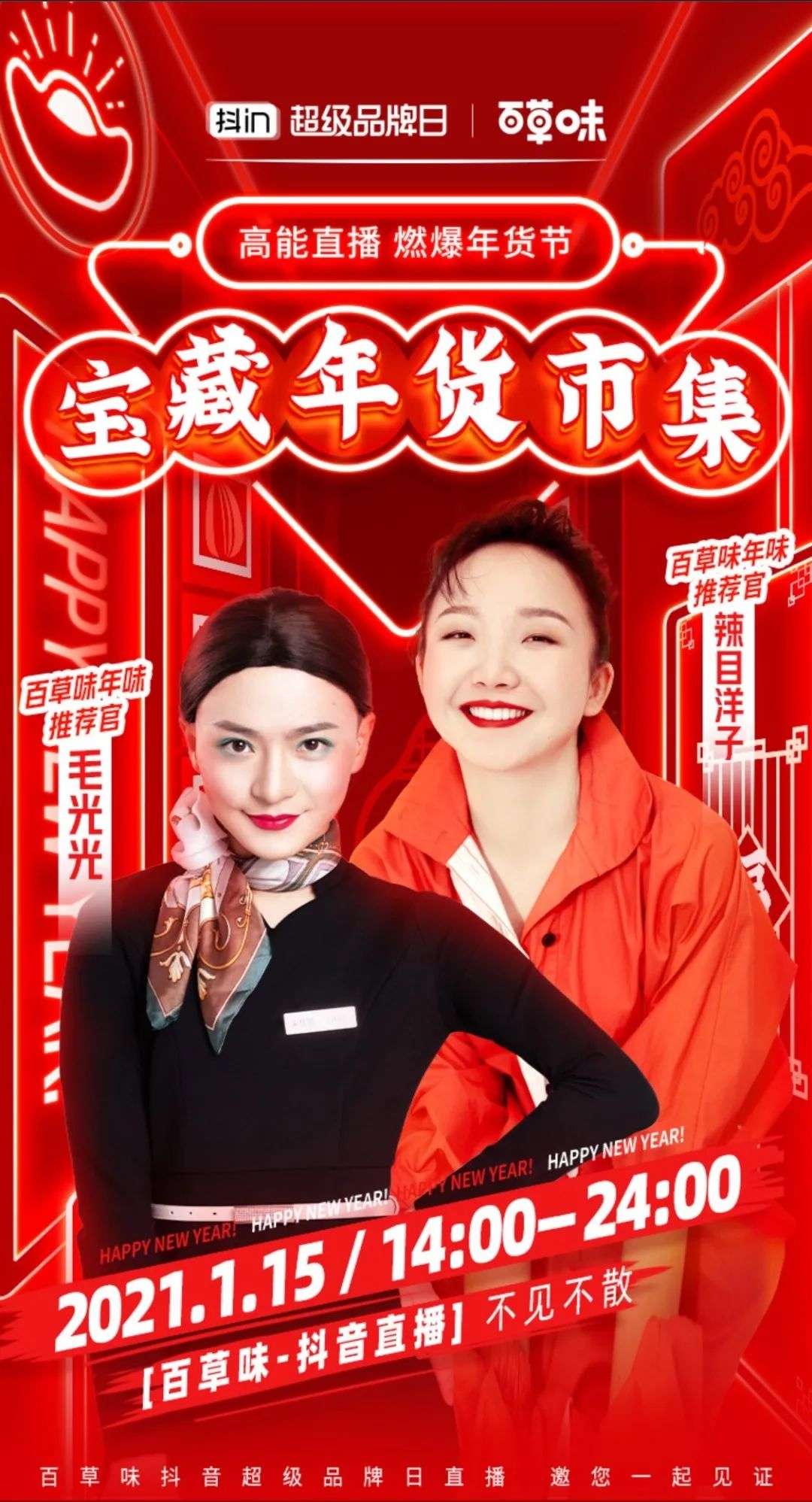 另一方面,在今年抖音电商年货节活动期间,百草味曾邀请到明星辣目洋子和抖音达人毛光光两位主播助阵。直播期间,两位「戏精」同台以极具生活化的方式,还原了百草味零食在春节中的各种应用场景。其实在此次直播活动之前,百草味就与众多百万粉丝级别抖音达人合作,为品牌直播间引流,借助不同领域达人的内容创作能力,通过高度结合产品的剧情类内容吸引年轻消费者的注意力。