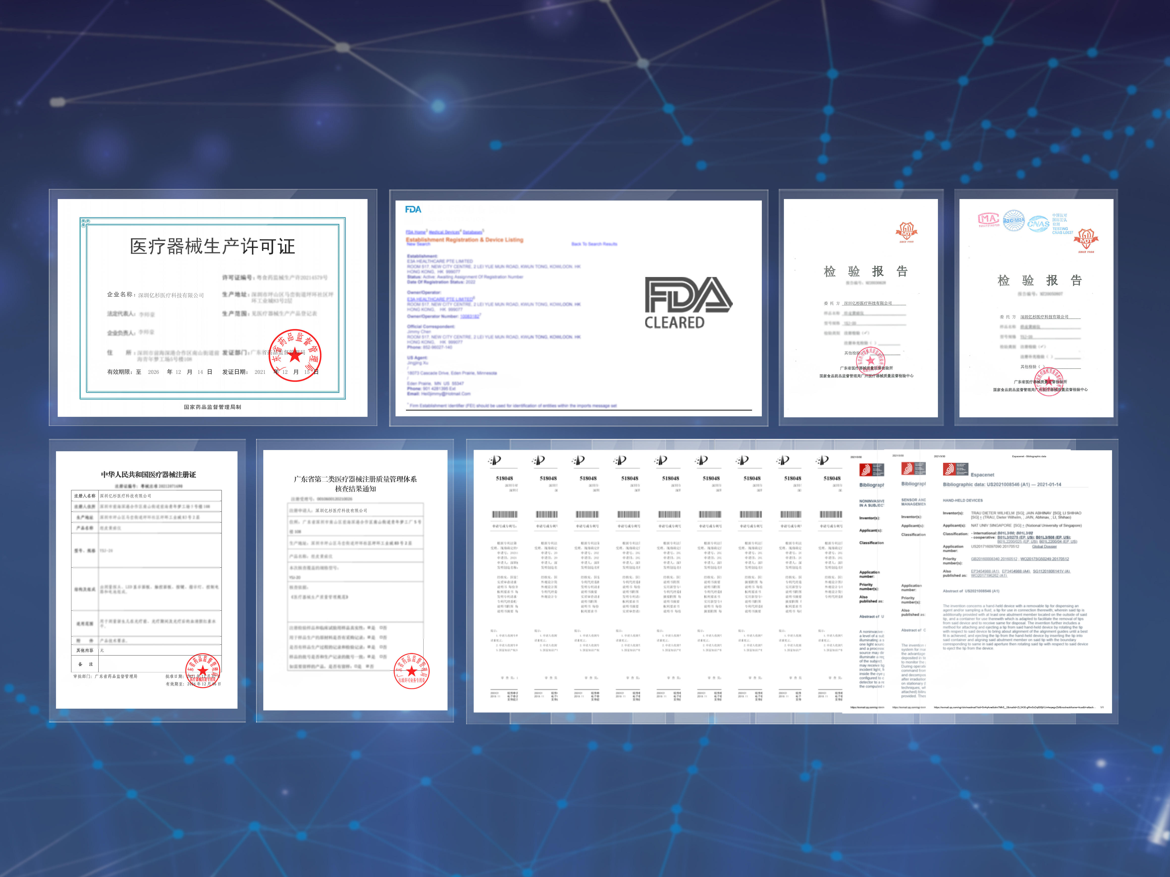 「亿杉医疗」部分相关专利、医疗器械注册证及FDA/CFDA认证展示
