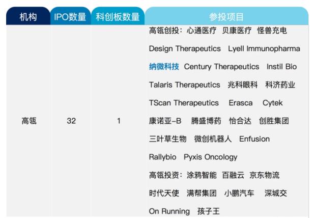 从今年的参投项目来看,高瓴以32家IPO战绩夺魁。此外,手上还拥有中国独角兽企业44家,数量排名中国第三,仅次于红杉资本中国和IDG资本,截至今年11月30日,对其共计出手投资72次。