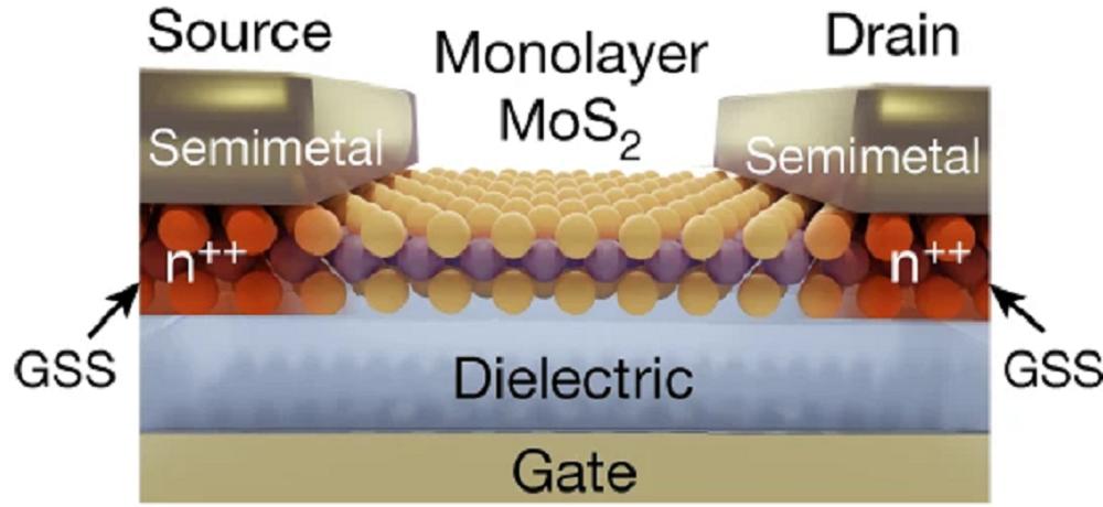 ▲具有单层半导体(MoS2)的二维场效应晶体管原理图(图片来源:Nature)