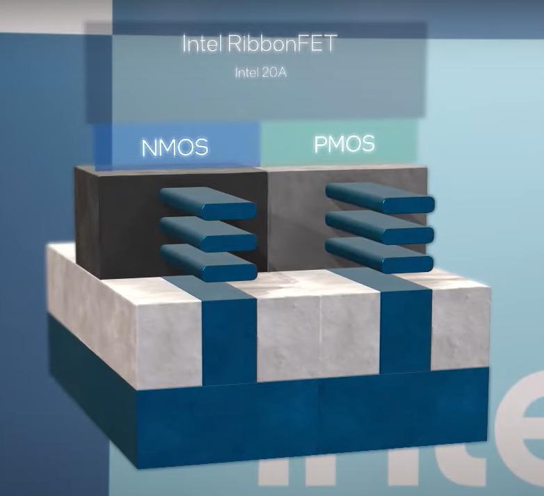 今年7月,英特尔公布了自己的RibbonFET晶体管结构以及新的制程命名方案。RibbonFET是英特尔对Gate All Around(GAA,全环绕栅极)晶体管的实现,计划被用于英特尔20A节点上。