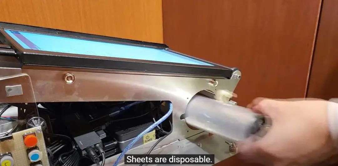 等你选取某种味道,它会被喷洒在卫生薄膜上,薄膜则在屏幕上滚动,然后准备拿舌头去舔吧。