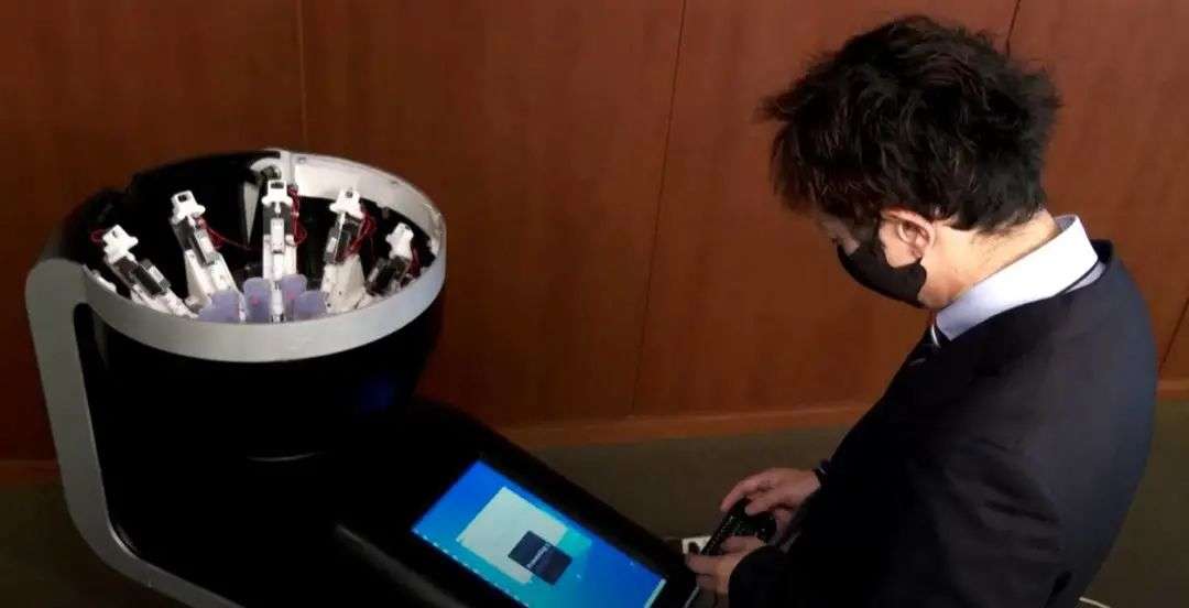 在演示过程中,一名明治大学的学生告诉屏幕,他想尝尝甜巧克力。几次尝试后,一个自动语音重复了这个命令,喷洒器将样品喷到了薄膜上。