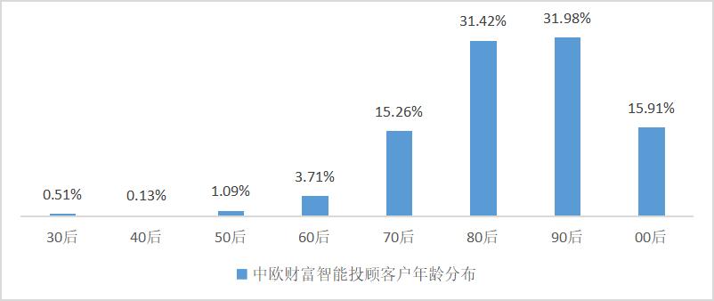 中欧财富发布的《试点一周年:公募基金投顾白皮书》显示,在其投顾产品用户中,90后占31.98%、80后占31.42%、00后15.91%。而且年轻人更喜欢All in,近32%的用户基金投顾资产占总资产50%以上。