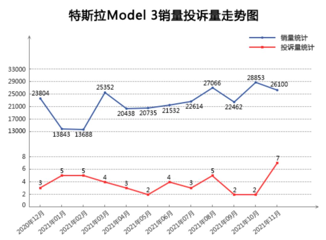 “从其近一年来的月投诉表现来看,投诉量均保持在个位数,但随着市场保有量不断增加,一些故障问题也随之显现,导致月投诉表现与去年同期相比略有转差。但总体来看,特斯拉Model 3短期的质量口碑表现还是值得肯定的。”车质网研究院分析称。