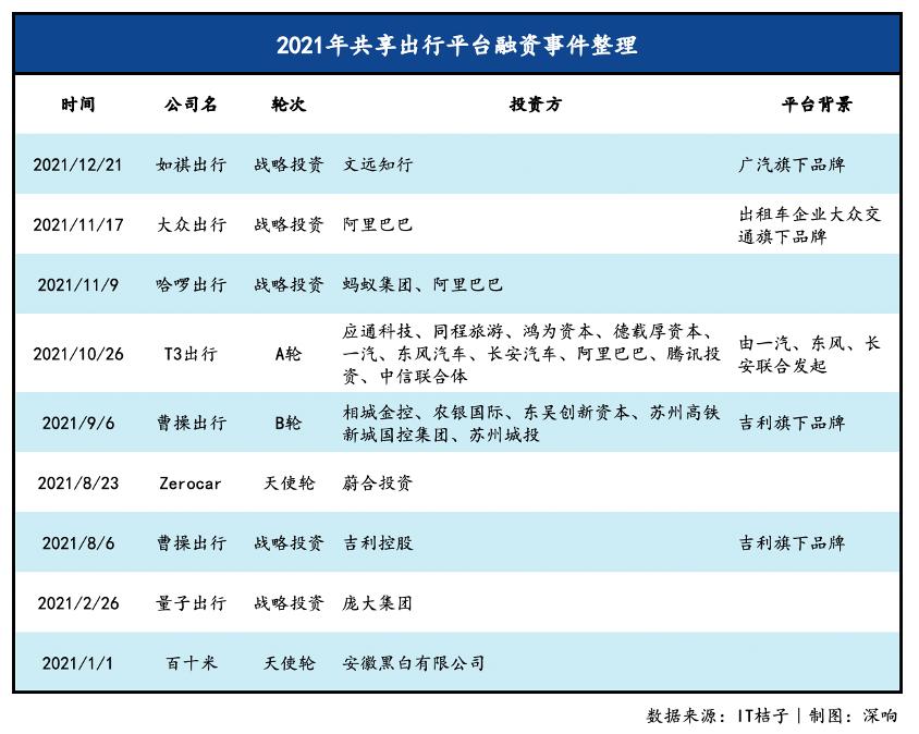 10月,由一汽、东风、长安联合发起的T3出行完成A轮融资。