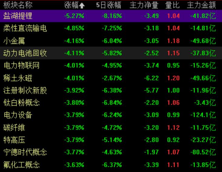 “锂”是电,“锂”是光,“锂”是唯一的神话,那是因为缺锂。但市场传着巨型锂矿带的发现,锂短缺的预期可能会受到冲击,因此盘面上锂矿板块,盐湖提锂板块跌幅居前。
