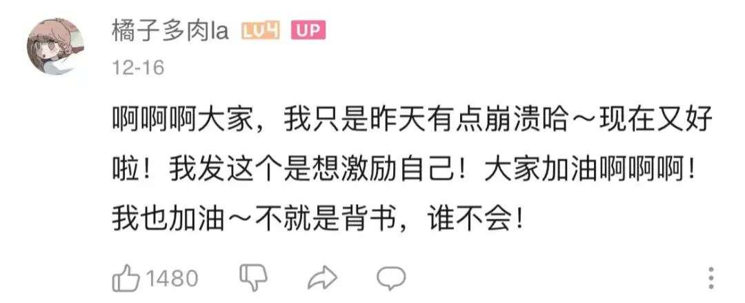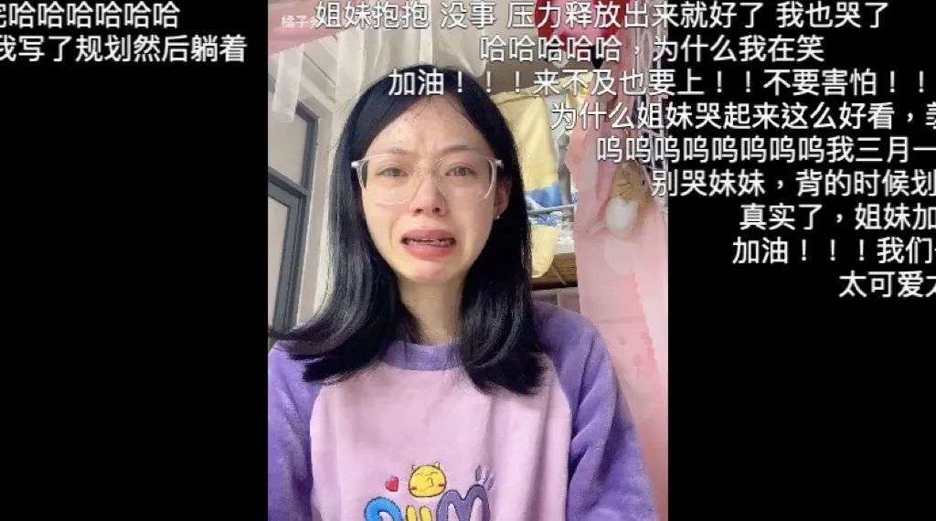 UP主@橘子多肉la 就觉得考研的压力太大,书看不进去,定下的学习计划根本完不成,每天都在哭。
