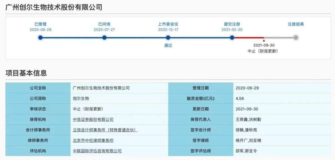 2020年6月8日,创尔生物在中信证券的辅导下,通过证监会广东监管局的辅导验收。同年6月23日,创尔生物向上交所提交了申报材料,自2020年6月24日开市起停牌,并在12月17日成功过会。
