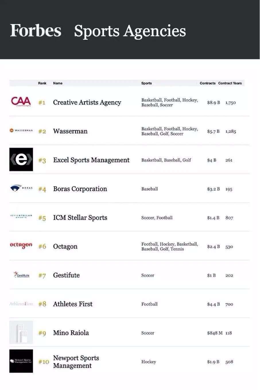 2020《福布斯》体育经纪公司榜