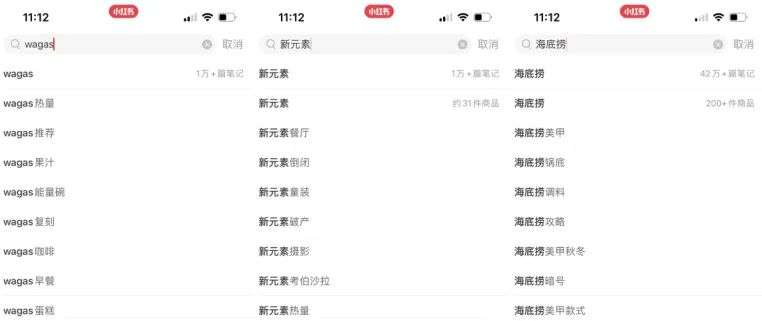 在小红书上,新元素和Wagas的种草笔记都只有10000多篇,不到海底捞的十分之一。在外卖平台上你甚至找不到新元素的名字。