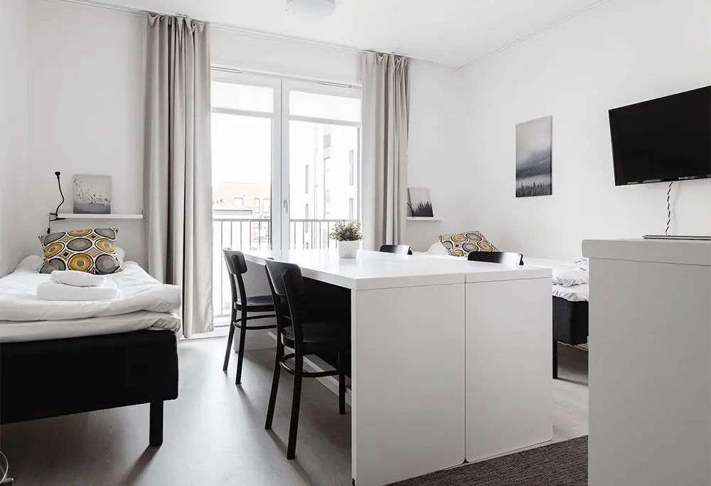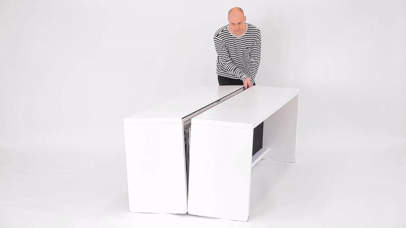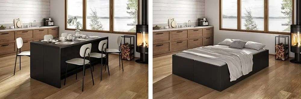 他很快就实际行动了起来,捐赠和丢弃所有不必要的东西,但最后他将视线转移到桌子和睡床上——这两样东西太占地方了,而且通常不会同时使用。为什么不可以将它们合二为一呢?