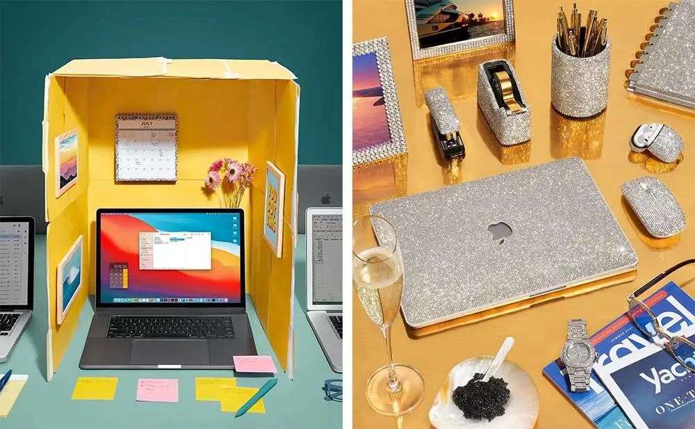 ▲ Margeaux Walter 今年为《纽约时报》创作的「同事」系列,左图配文:「一个人就不能在这里(工位)得到一点隐私吗?」. 图片来自:Instagram @margeauxwalter