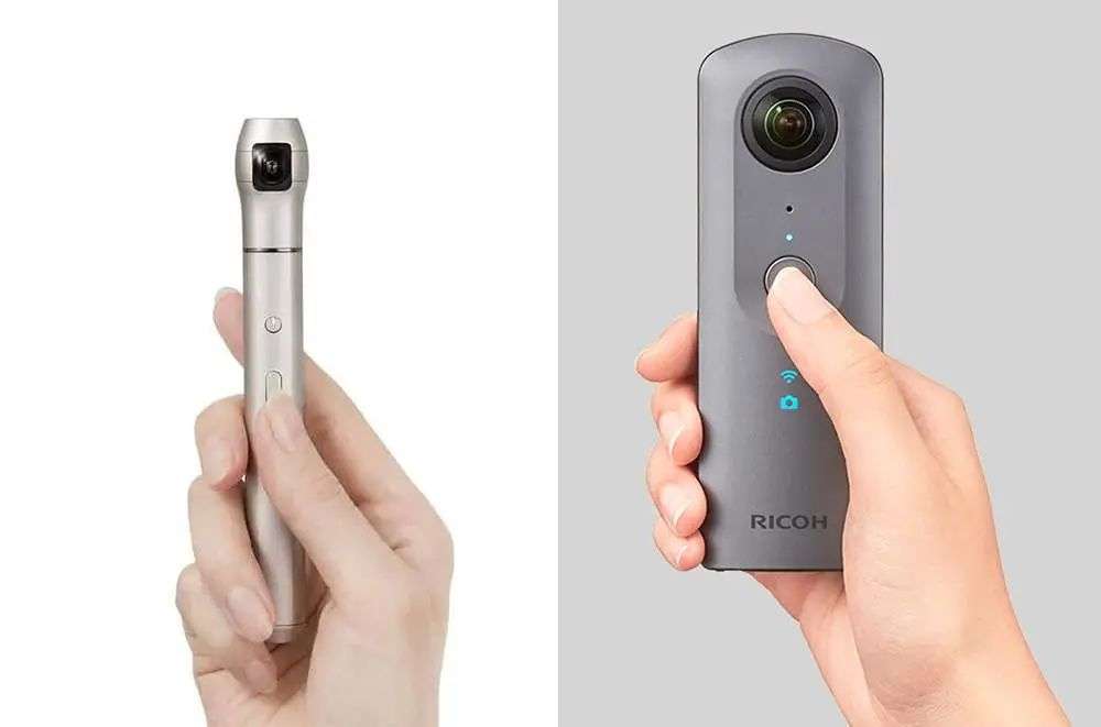 ▲ 全景相机 Vecnos(图左)和 Theta(图右). 图片来自:Unwire / Theta 官网