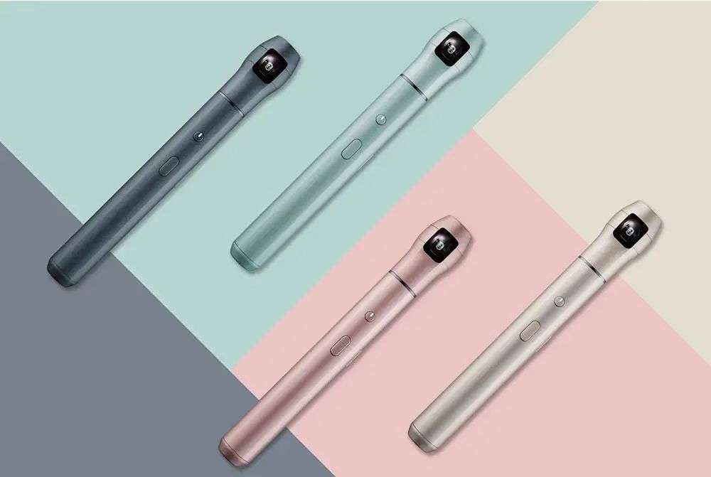外形小巧如小号手电筒的 IQUI 相机,却有着平面的 360 度摄像头——由 4 块方形镜片组成,再通过合成技术组合成全景照片,分辨率高达 5760 x 2880 px,内含 14 G 储存容量,还可以录制 4K 30 fps 的影片。