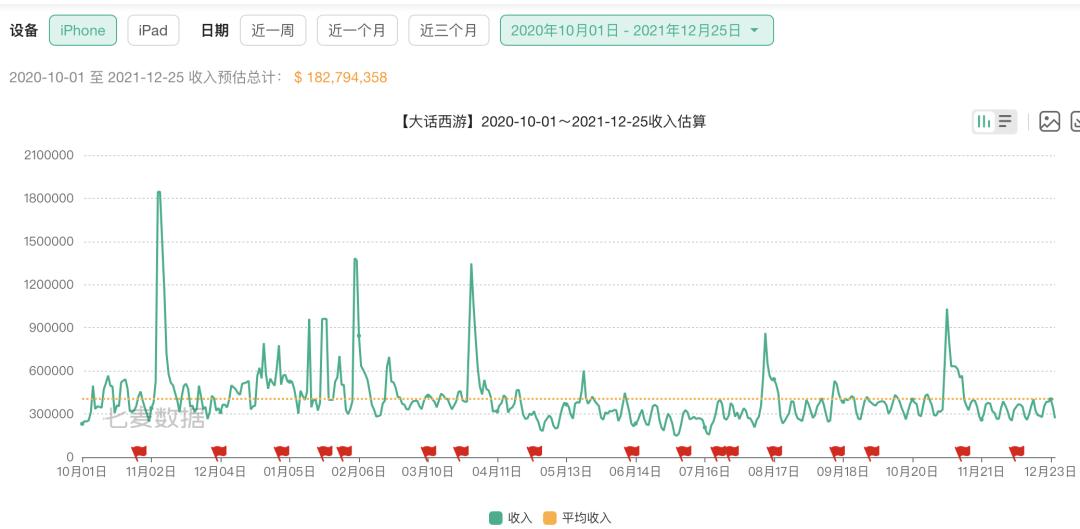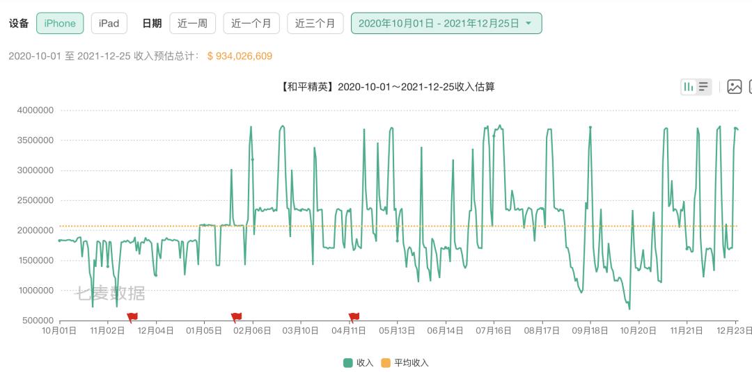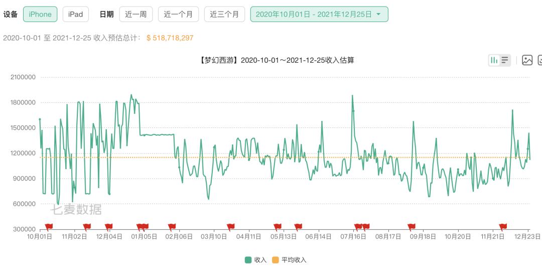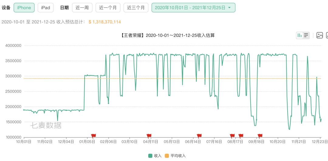 《王者荣耀》iPhone收入预估,截图自七麦数据