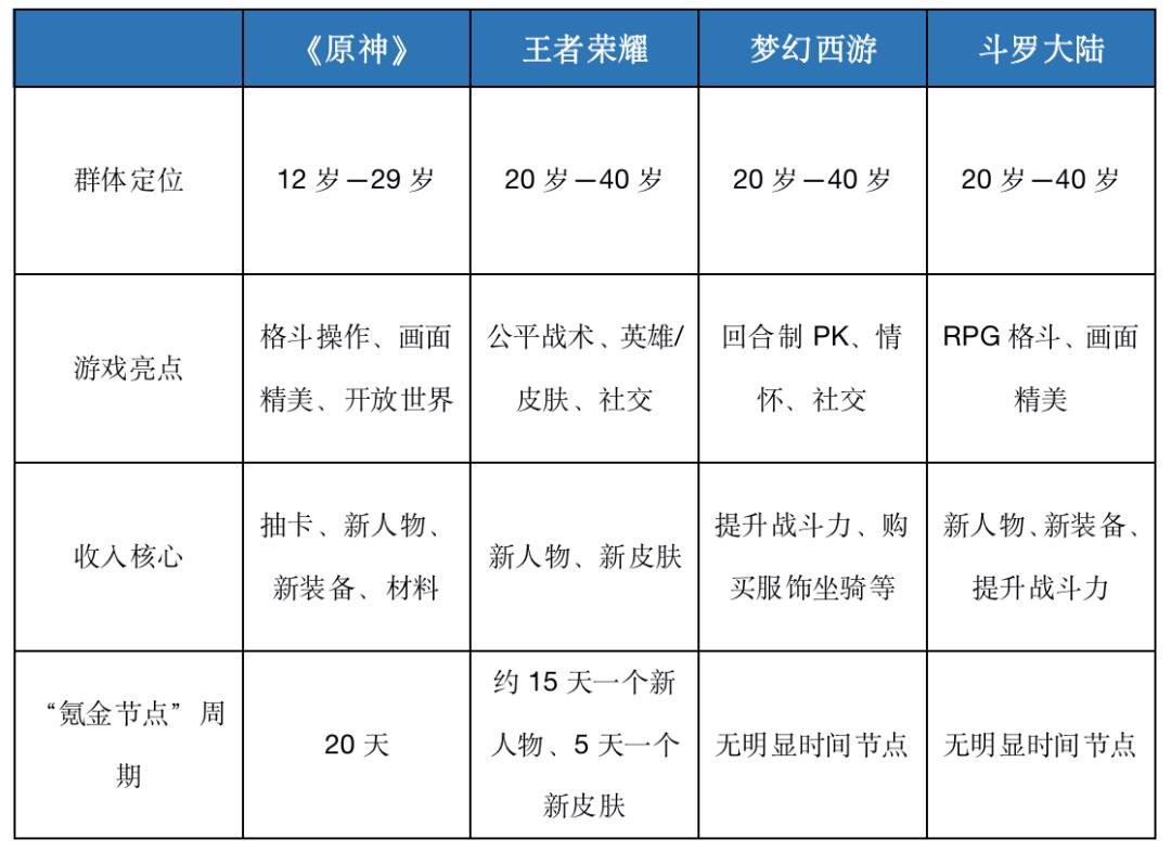 销售额:较高——《原神》上线一年全球收入20亿美元,总收入仅次于王者、吃鸡、梦幻等传统“吸金”大户;
