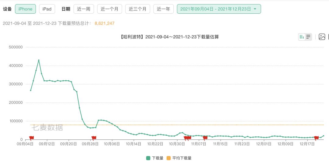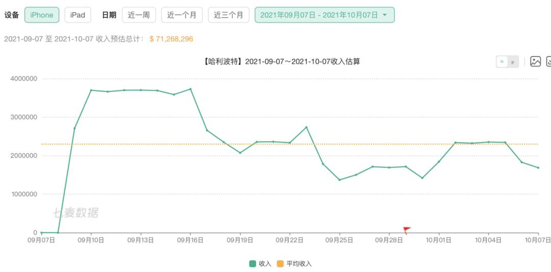 《哈利波特》上线首月iPhone收入预估,截图自七麦数据