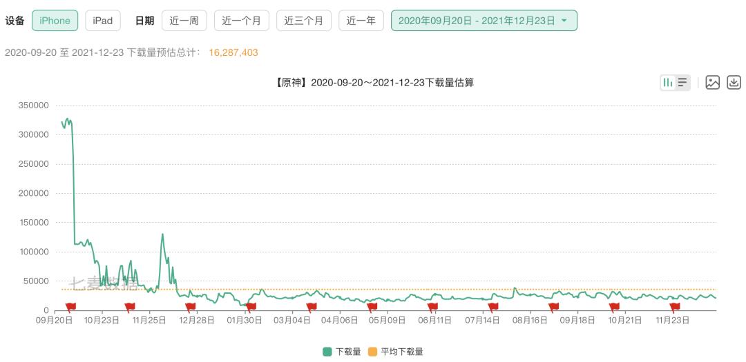 各手游iPhone预估下载量,仅《原神》二次下载高峰较明显